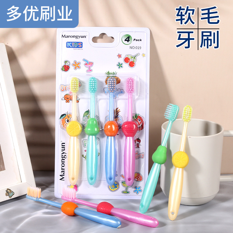 儿童四支装家用细丝软毛刷宝宝幼儿水果刷柄儿童卡通水果软毛牙刷