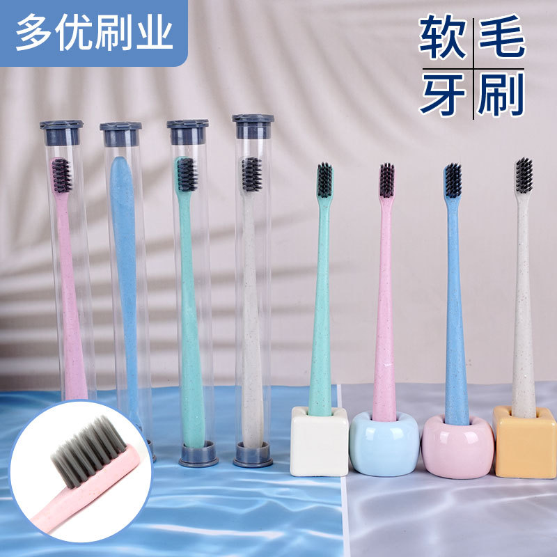 细丝刷毛马卡龙色独立筒装小麦秸秆刷柄家庭单支装成人软毛牙刷