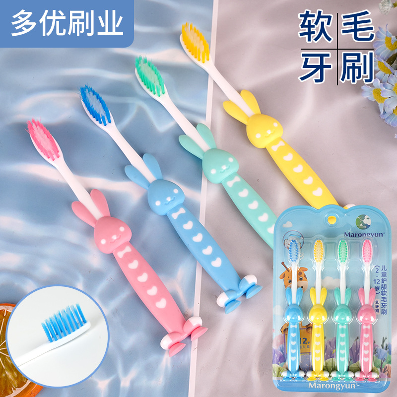 小兔吸塑四支装家用超市批发卡通可爱兔子手刷柄儿童卡通软毛牙刷