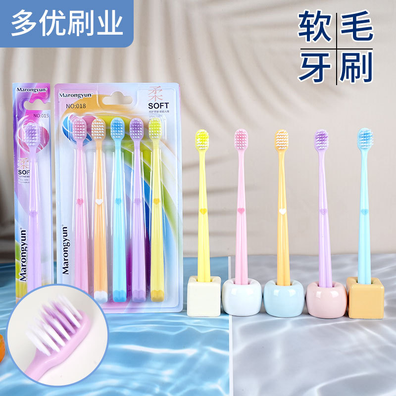 单支/五支装软毛牙刷家用情侣成人独立包装马卡龙色爱心软毛牙刷