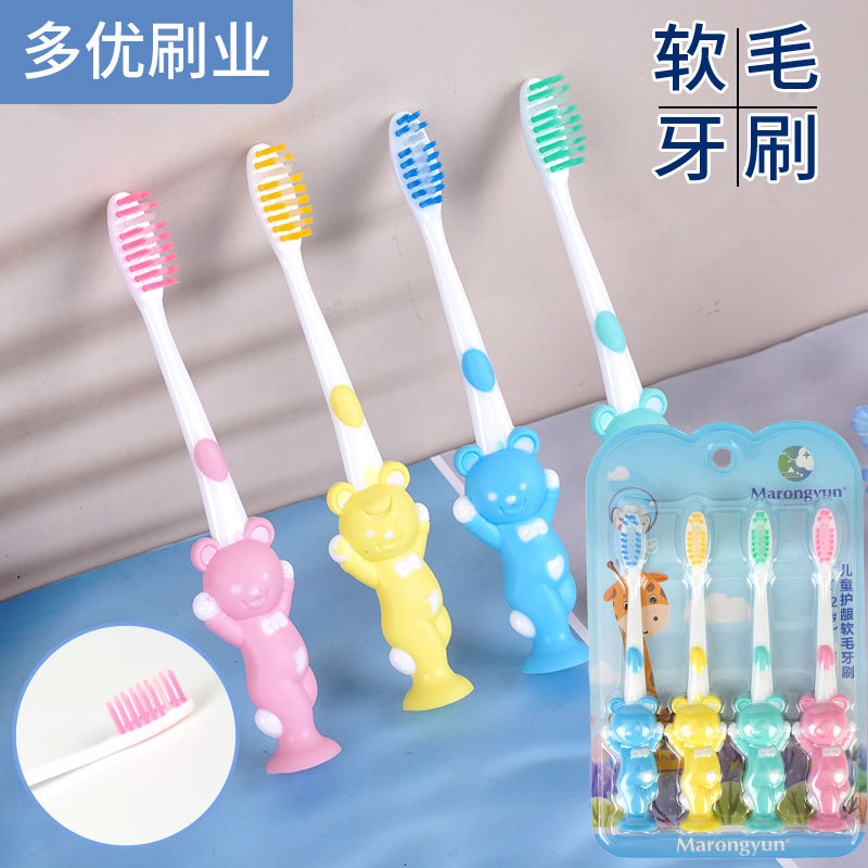 小熊吸塑四支装家用超市批发卡通可爱小熊手柄牙刷儿童卡通牙刷