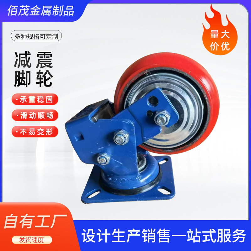 减震弹簧脚轮工业万向轮4568寸车间仓库物流周转车大载重减震胶轮