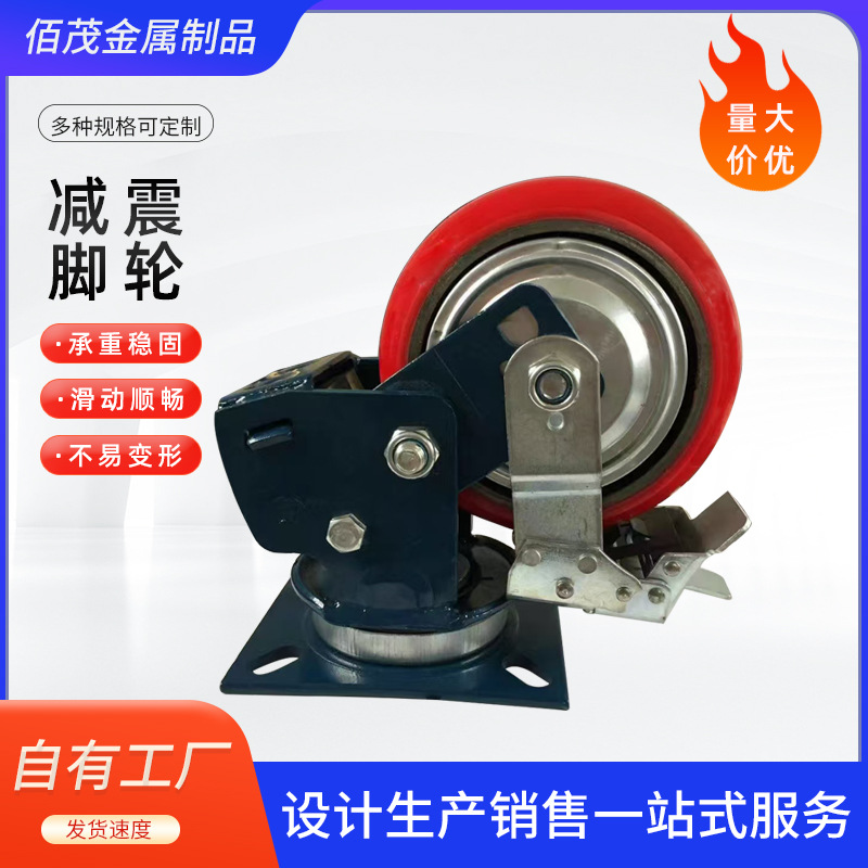 重型弹簧减震脚轮 防缠绕烽火轮平板推车避震刹车大载重静音轮