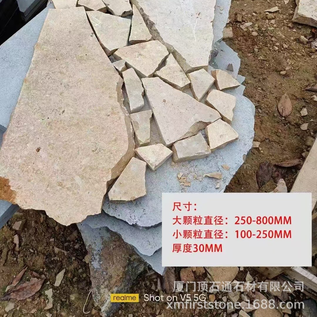 不规则地铺石天然莱姆石碎拼石材洞石文化石乱形石铺路石跨境澳洲