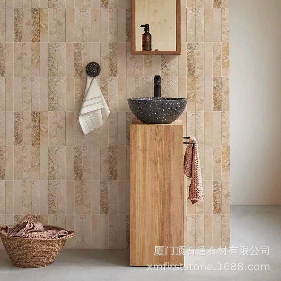 长条莱姆石米黄色洞石商场民宿别墅定 制户外庭院天然大理石地砖