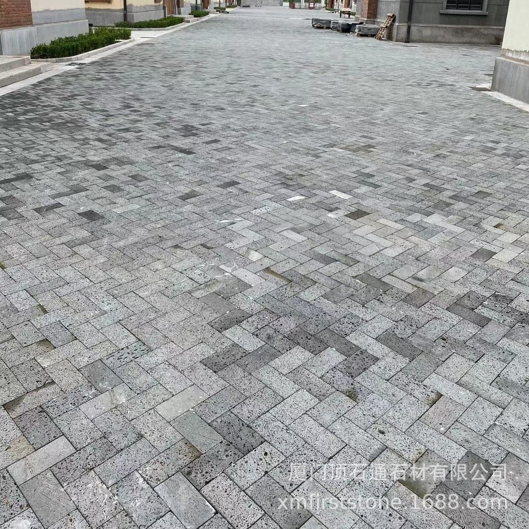 天然黑洞石地铺石海南黑色火山石板庭院造景玄武岩火山岩地铺石