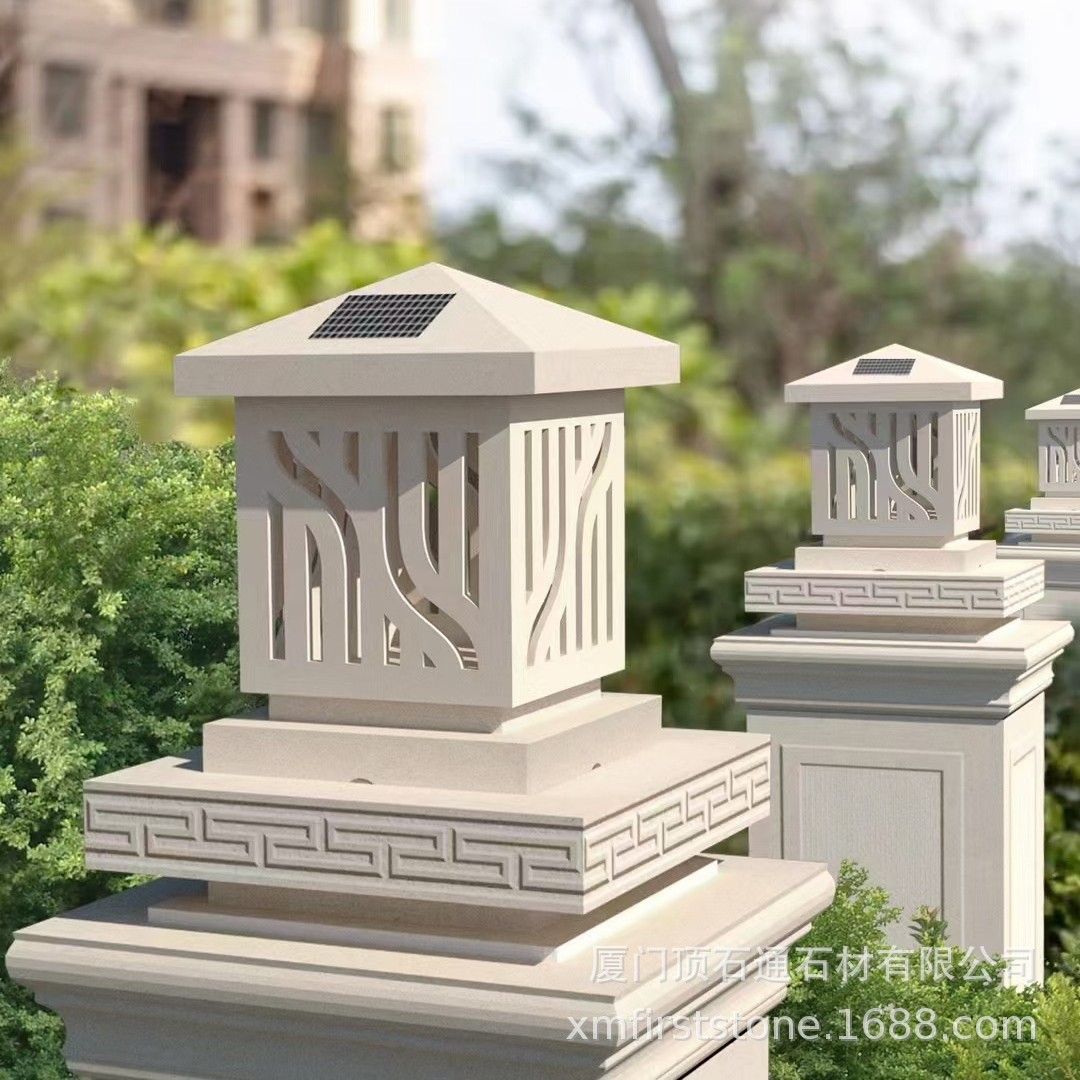 新款太阳能景观灯发泡陶瓷仿石灯笼批发装饰户外园林庭院石雕宫灯