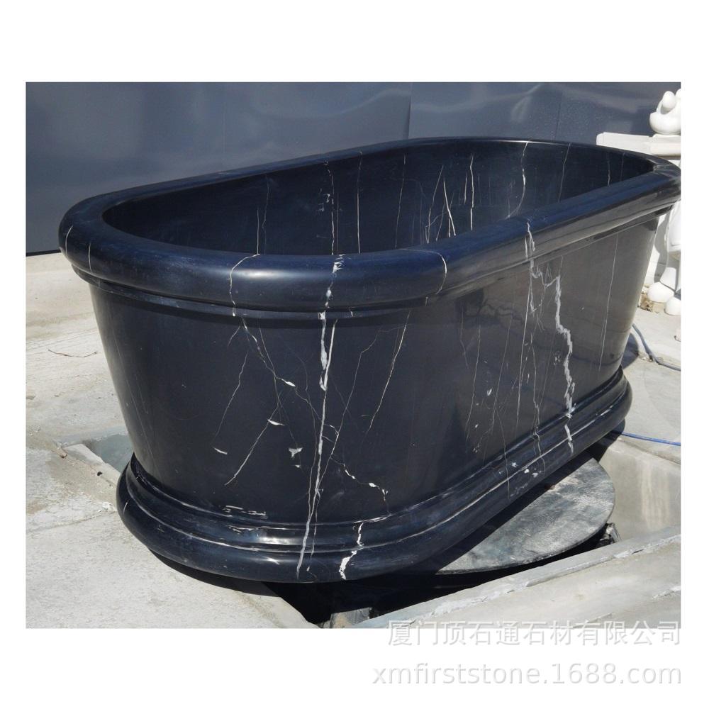 天然黑色大理石浴缸落地式一体石材加工酒店轻奢大理石独立式浴盆