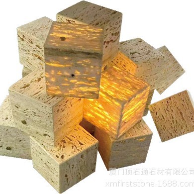 批发黄洞石夜灯户外景观石灰华壁灯装饰民宿别墅床头摆件小夜灯