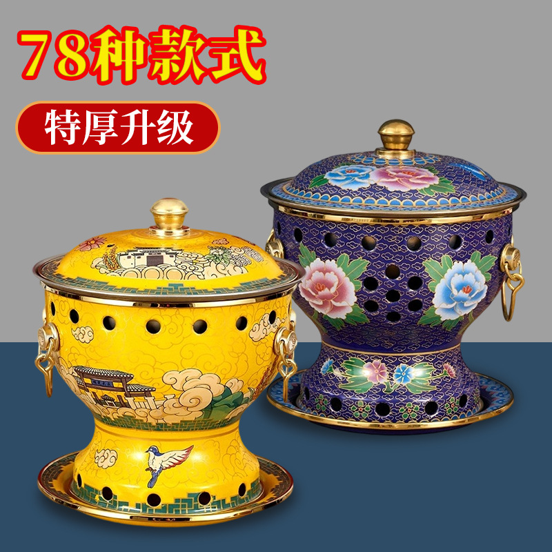 景泰蓝铜火锅铜锅火锅家用纯铜珐琅酒精炉子家用小型单人小火锅无