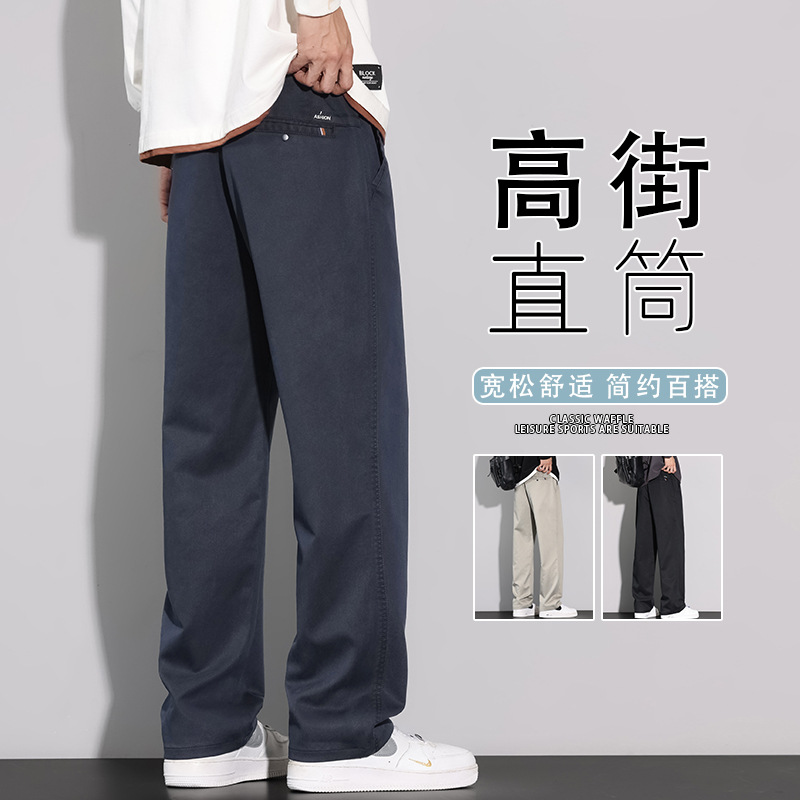 秋冬仿牛直筒宽松休闲裤男士2025新款潮牌百搭美式阔腿垂感裤子男