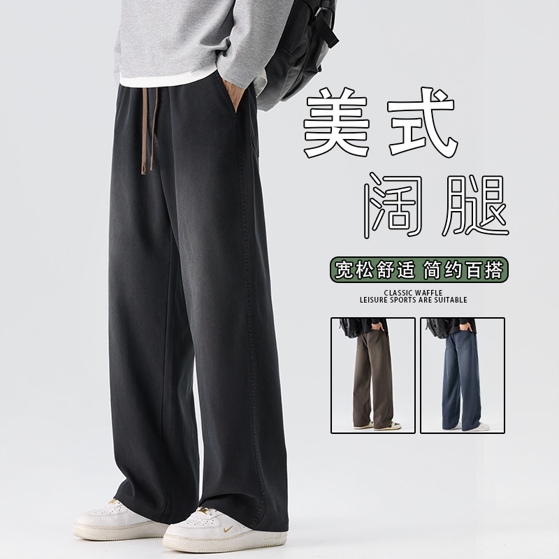 休闲裤男春秋季百搭美式阔腿裤2025年新款潮牌垂坠感宽松直筒长裤