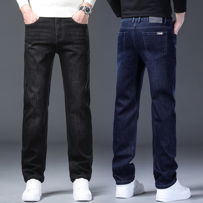 加绒牛仔裤男冬季商务直筒裤宽松商务爸爸保暖裤男士休闲百搭裤子