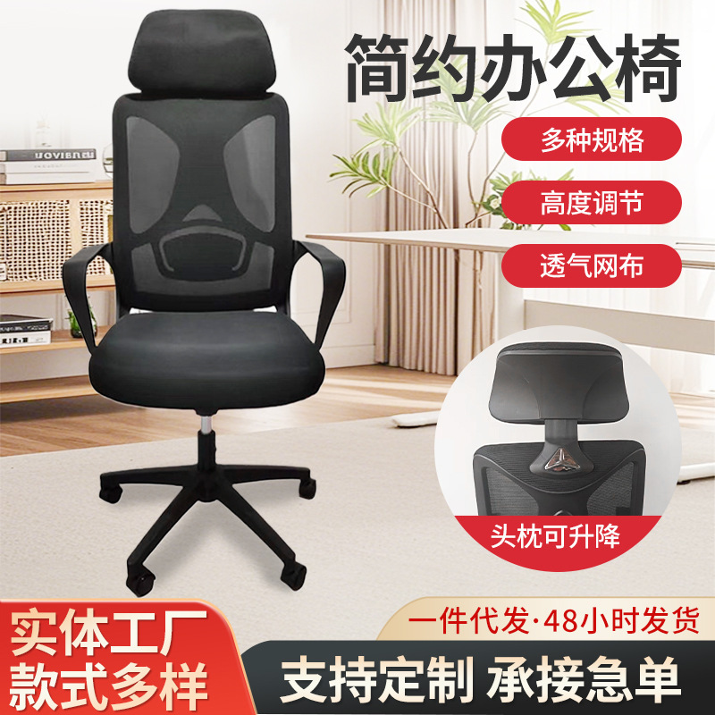 网布透气电脑椅人体工学学习椅久坐舒适靠背椅学生五角带头枕