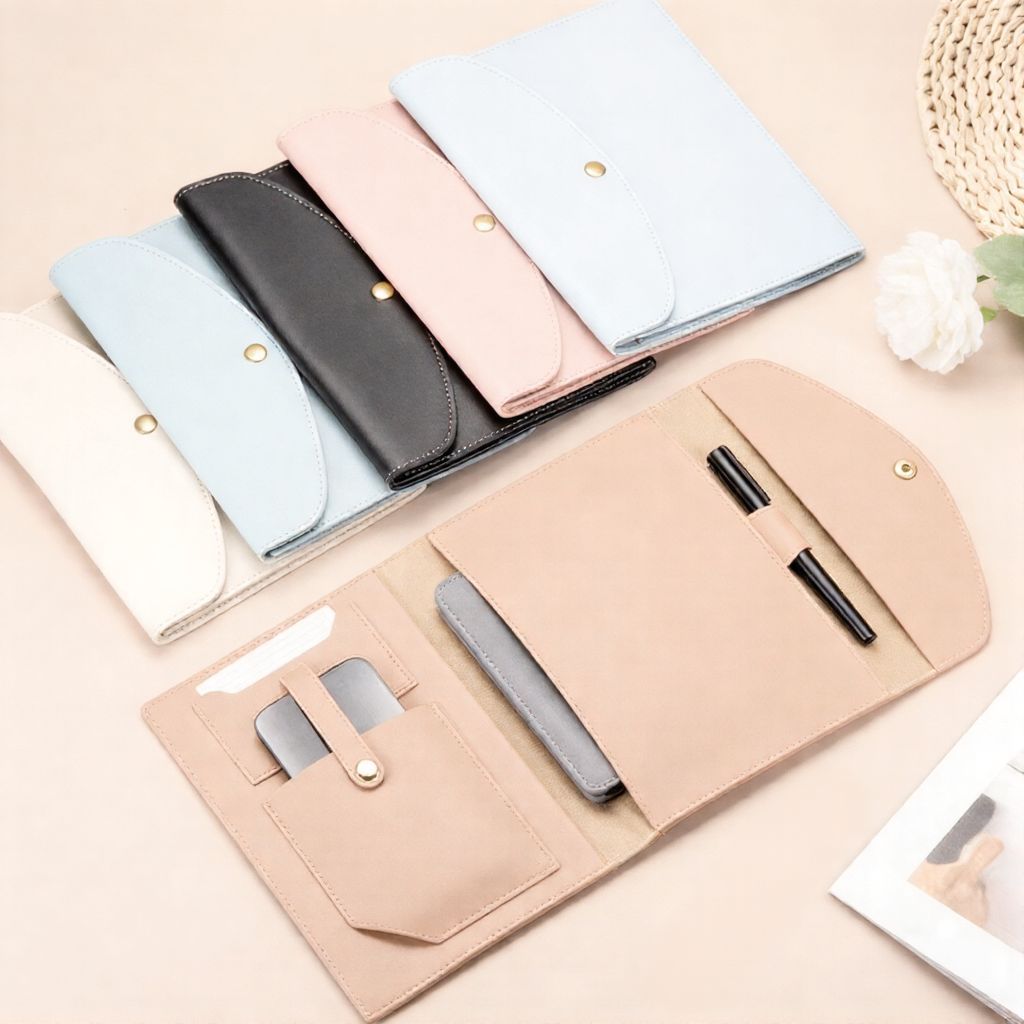 办公通勤会议三折叠记事本皮套手机插袋笔袋A5活页笔记本通用收纳