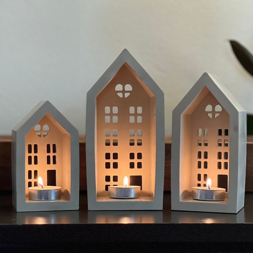 圣诞烛台,茶蜡混凝土小屋烛台,房屋造型烛台,节日餐桌摆设