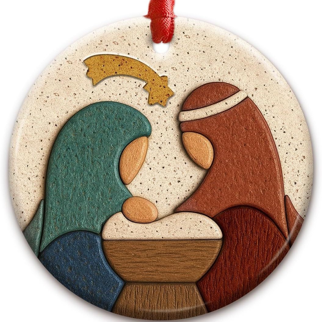2026 耶稣诞生圣诞挂饰圣母玛利亚约瑟与耶稣圣家水泥挂纪念摆件