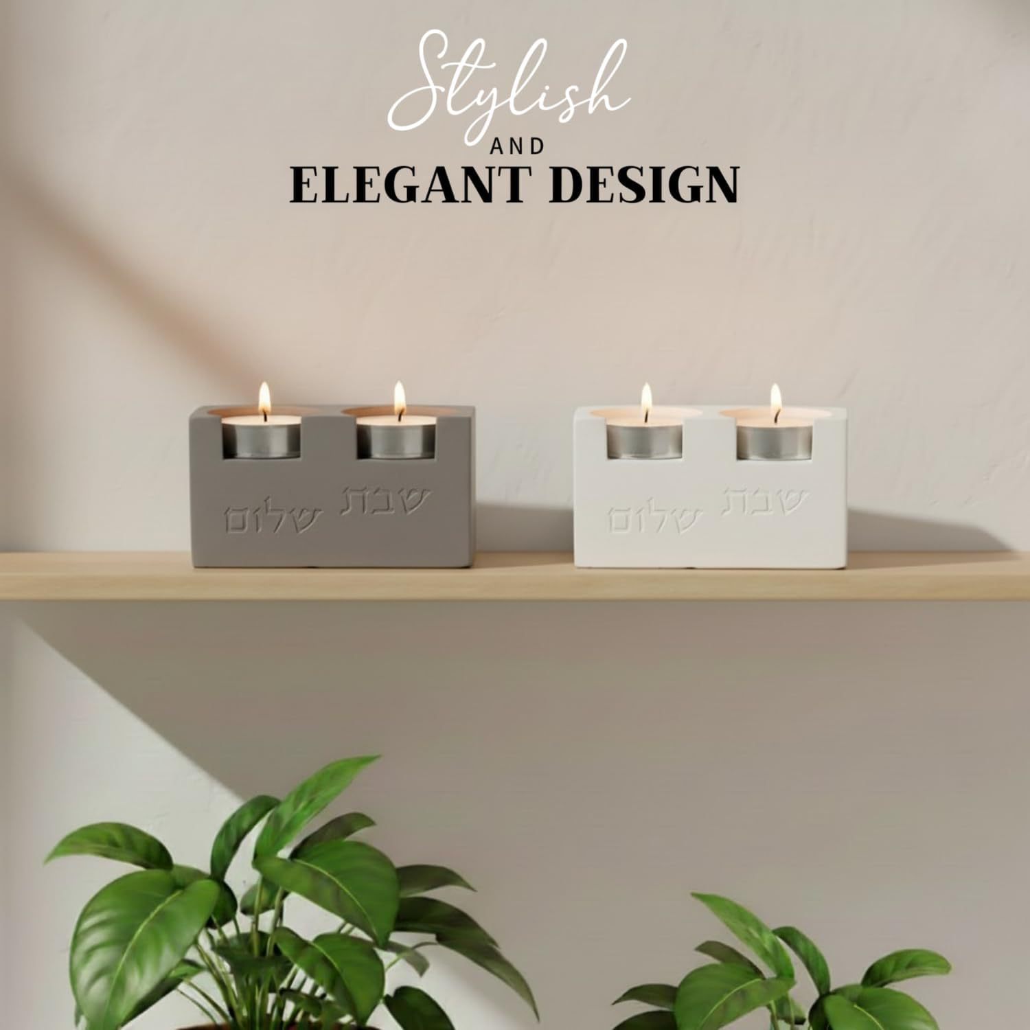 灰色水泥双格烛台 犹太安息日主题 家用氛围感装饰烛座