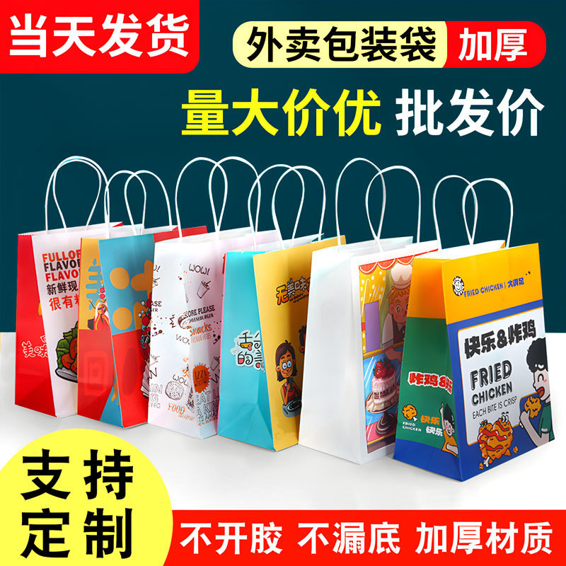 现货牛皮纸袋手提袋外贸礼品生日袋奶茶咖啡饮品外卖打包烘焙新年