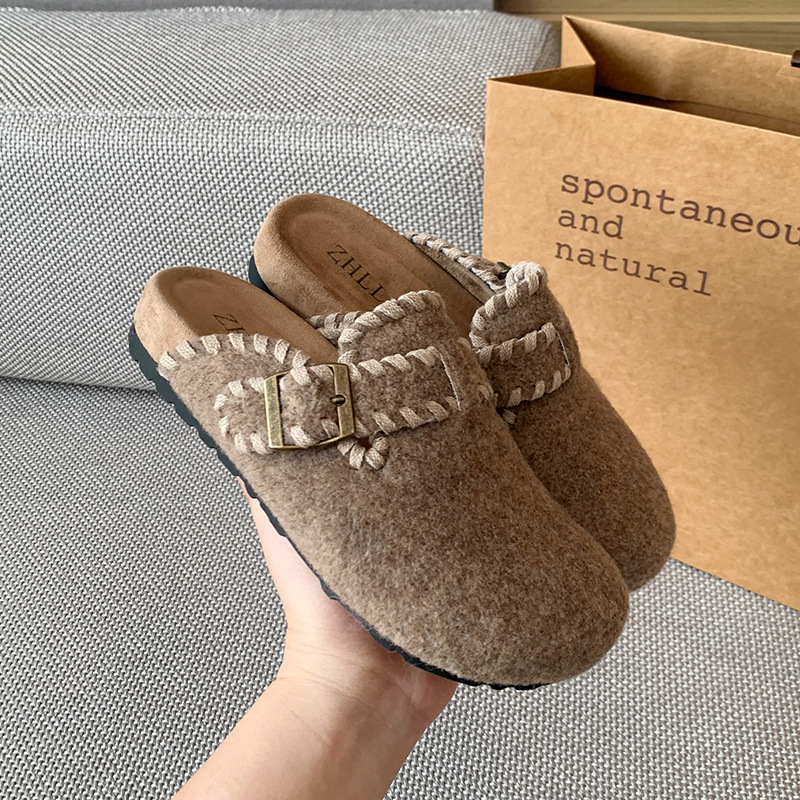 胖mm2025新款包头勃肯鞋半拖厚底毛毛鞋女外穿拖鞋冬季宽胖脚女鞋