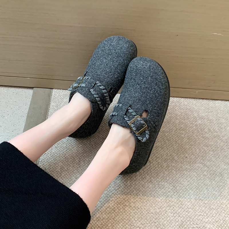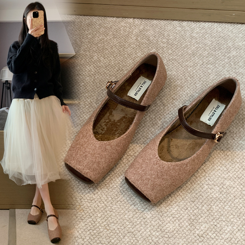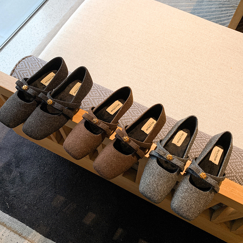 胖mm2025冬季新款毛呢休闲单鞋通勤平底鞋脚宽脚胖大码女鞋41到43