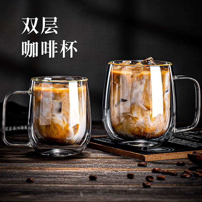 高硼硅双层玻璃杯耐高温家用水杯透明把手马克杯咖啡杯双层玻璃杯