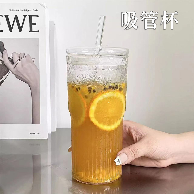 玻璃吸管水杯批发简约家用ins高硼硅耐热冷饮杯啤酒杯可乐吸管杯
