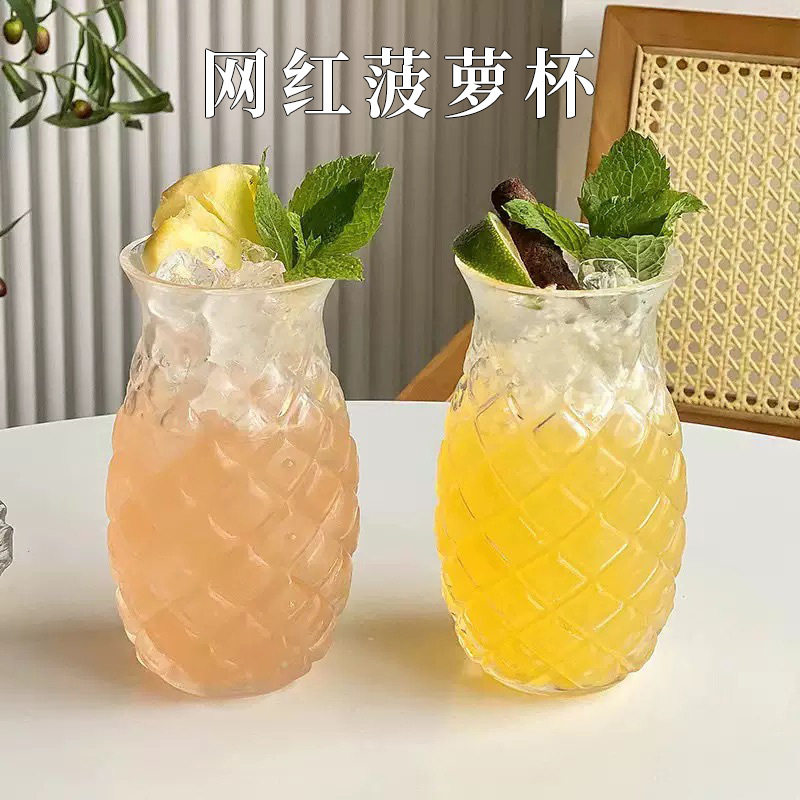 透明菠萝杯果汁玻璃杯 吸管冷饮杯简约水杯 家用玻璃单层杯冷萃杯