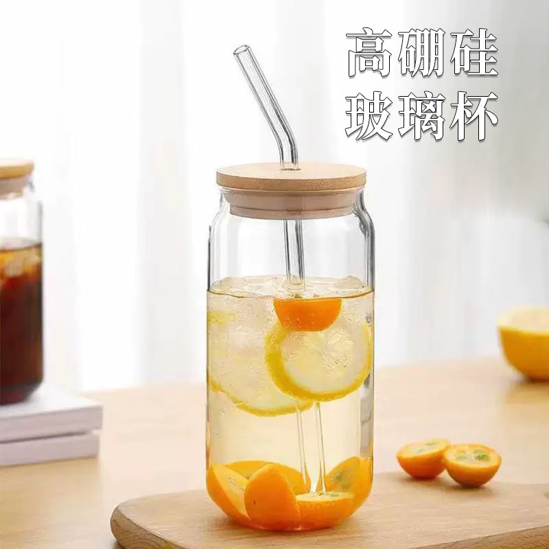 大容量玻璃吸管杯600ml冷饮杯奶茶杯果茶水杯ins风带盖吸管玻璃杯