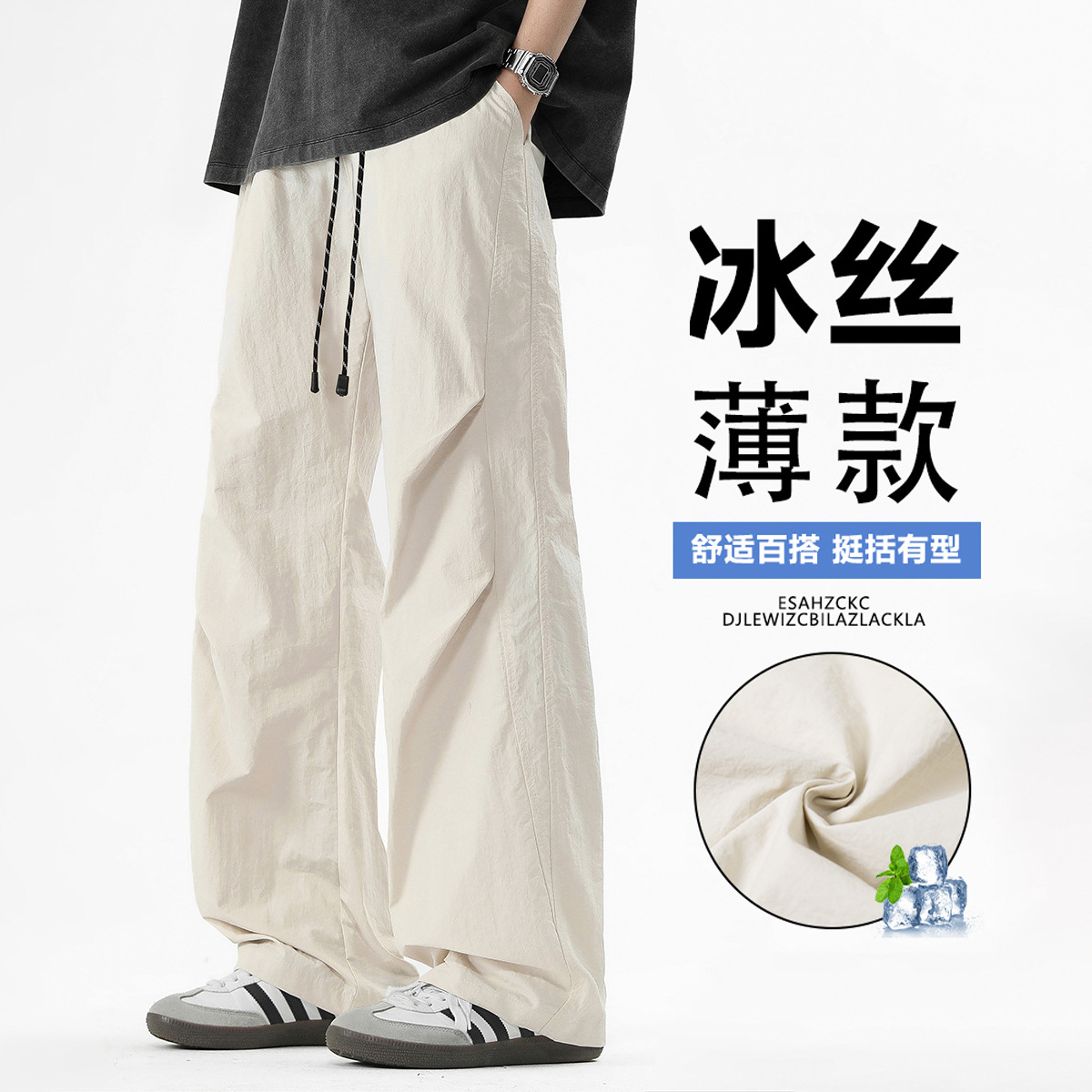 2026冰感冰丝薄款新款凉伞兵裤夏季男士宽松直筒速干工装休闲裤