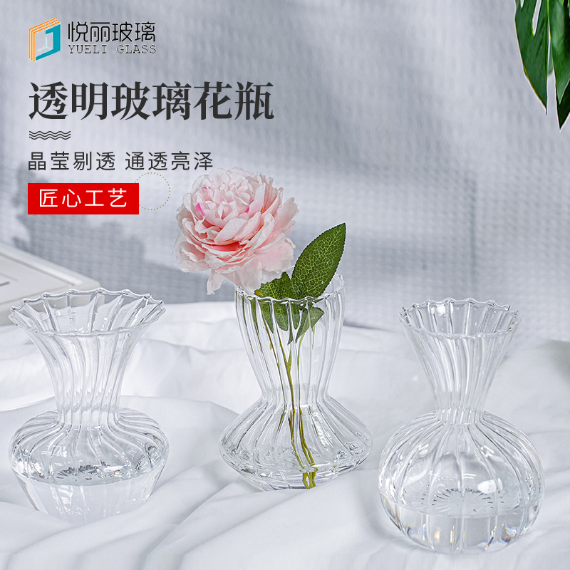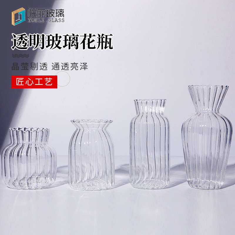 玻璃小花瓶ins风客厅桌面装饰花瓶水培绿植花器摆件条纹玻璃花瓶