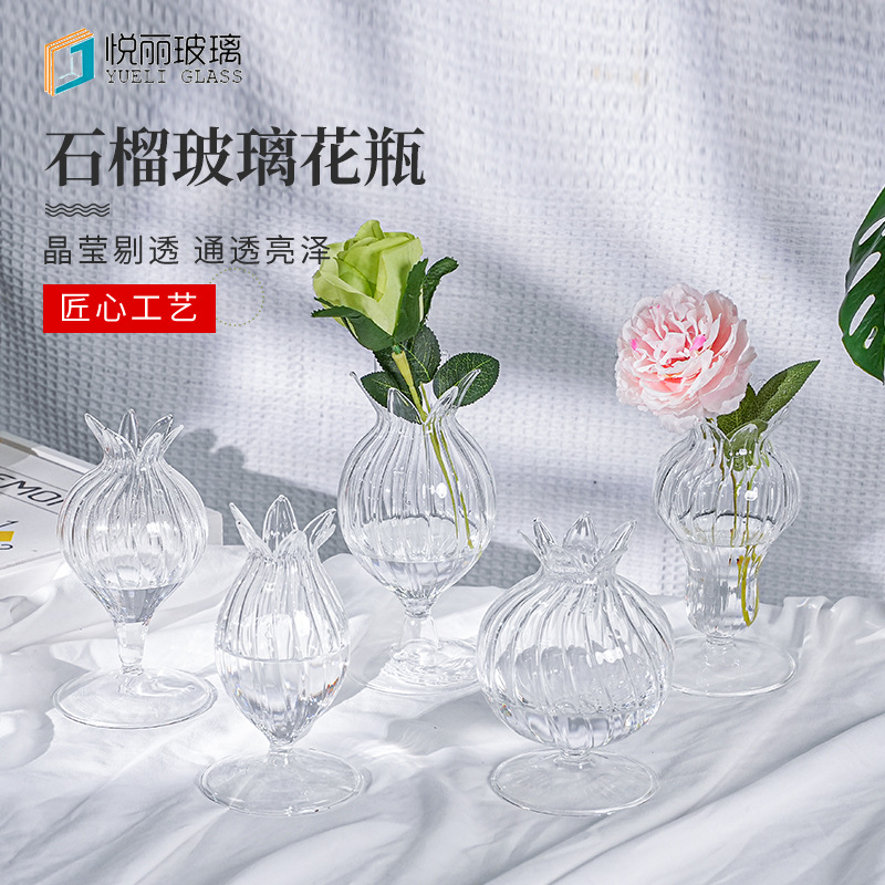 小石榴干花花瓶日式手作花器玻璃家居装饰品工艺品摆件石榴小花瓶