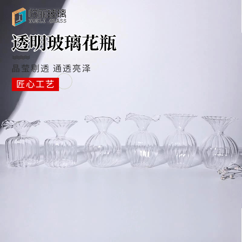 ins风玻璃小花瓶餐厅客厅装饰摆件极简花瓶复古异形透明条纹花瓶