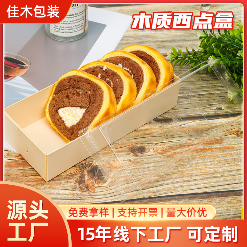 蛋糕包装盒长条形透明吸塑木质盒中式糕点烘焙包装盒子甜点蛋糕卷
