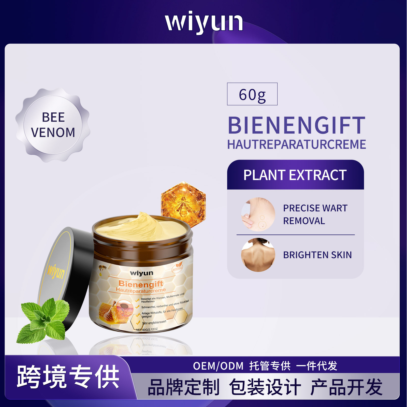 WIYUN 蜂毒净肤润泽霜 草本成分温和洁净光滑肌肤细腻柔嫩霜