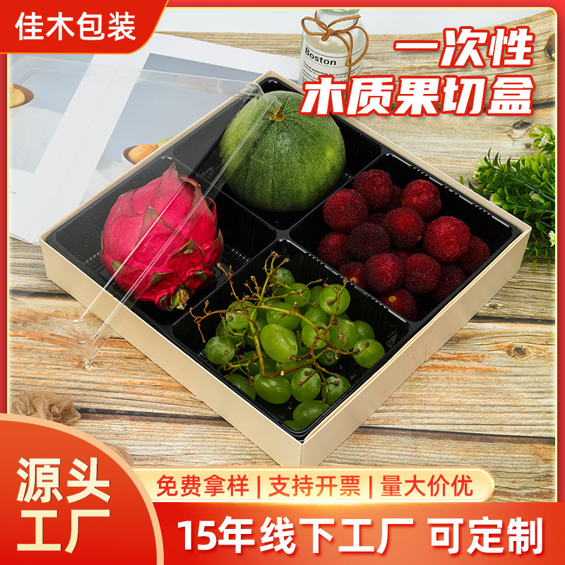 木质果切盒网红水果四拼盒草莓荔枝晴王鲜果包装盒一次性透明打包