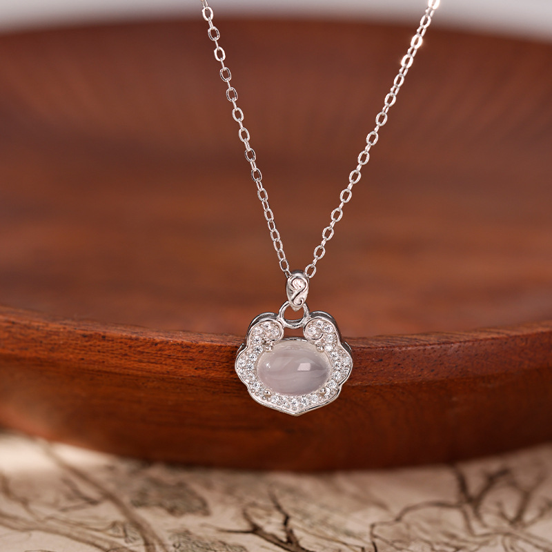 玉髓满钻祥云平安锁项链女士轻奢小众设计感新中式复古锁骨链批发