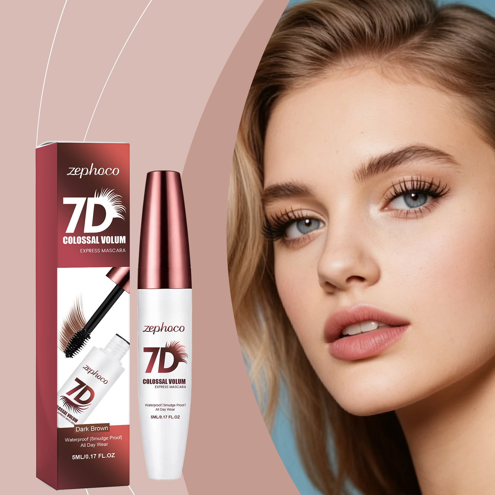 zephoco立体浓密防水睫毛膏(深棕色)自然卷翘不易晕染持妆睫毛膏