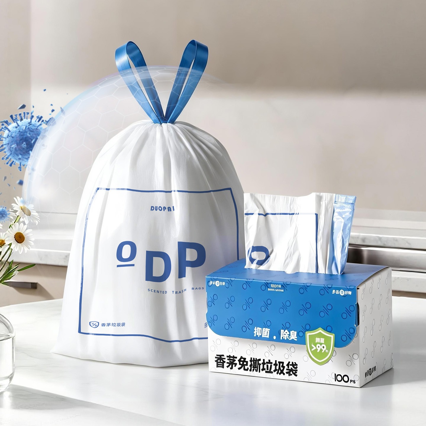 香茅祛味垃圾袋 免撕加厚手提抽绳自动收口家用大号盒装卫生高颜