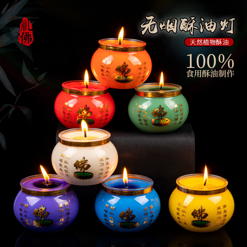 七彩酥油灯佛钵蜡烛供佛1-3天酥油灯佛前供灯长明灯无烟家用环保