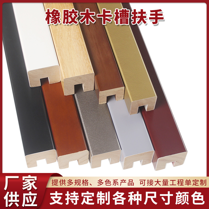 橡胶木卡槽扶手室内家用实木烤漆自装农村自建房u型槽护栏扶手
