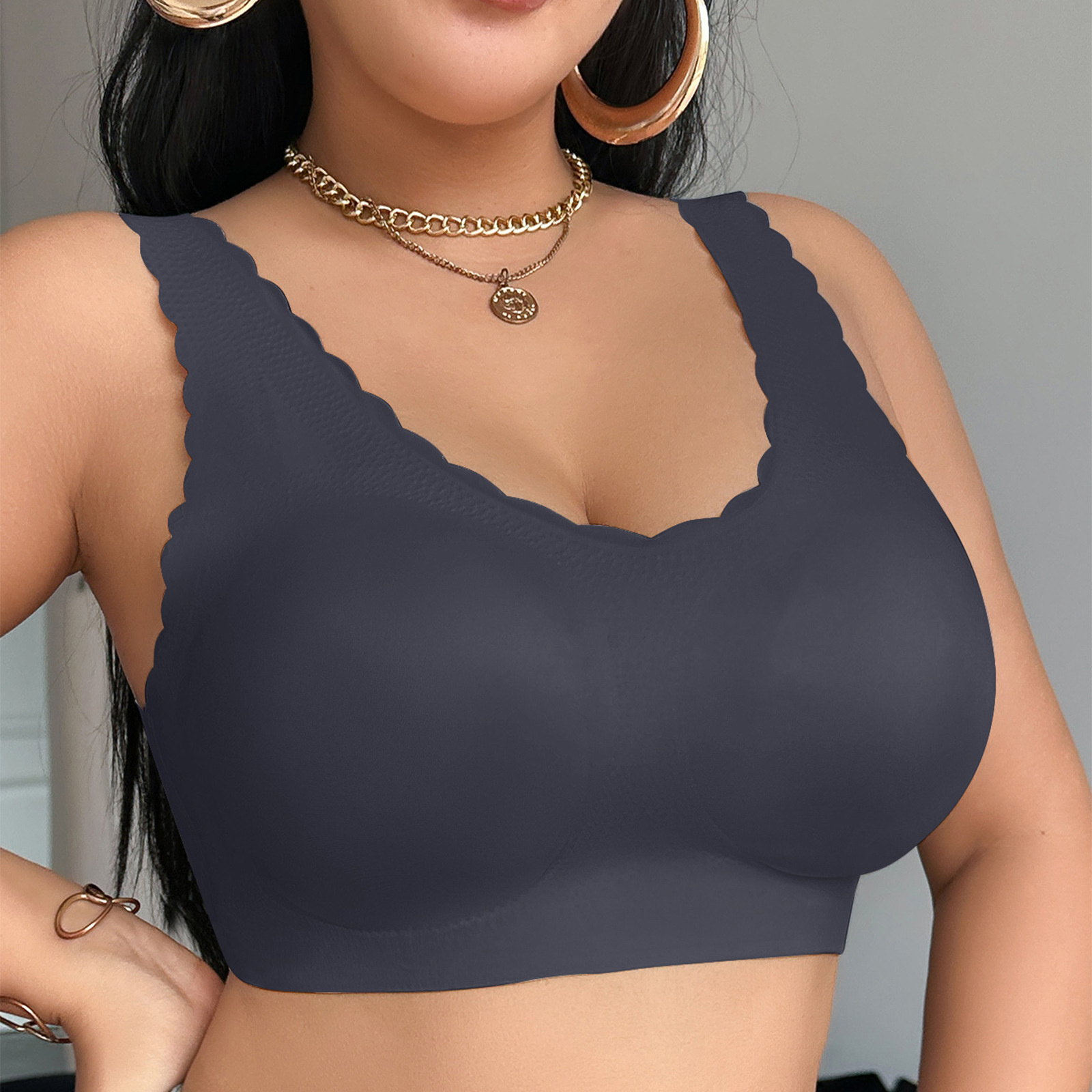 Zeriluna精致花边百搭舒适内衣 扇形边缘舒适文胸宽肩带日常内衣