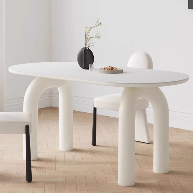 2024新款餐桌椅小户型长方形家用客厅轻奢法式奶油风白色岩板餐桌