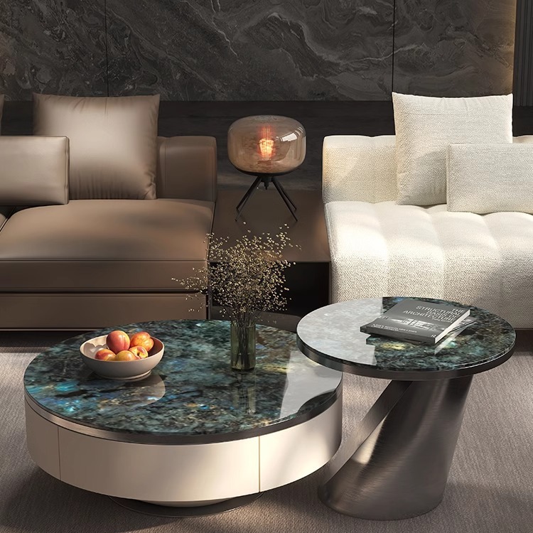2024新款天然大理石茶几客厅家用意式轻奢圆形大小组合客厅茶几