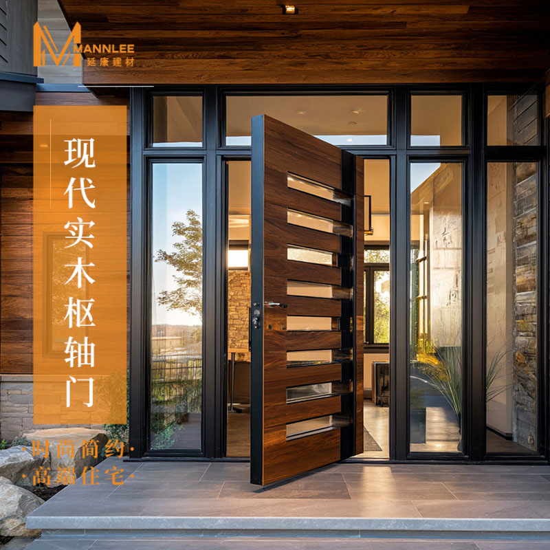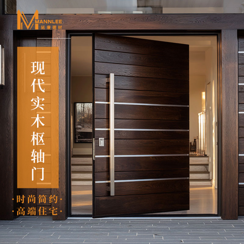 现代化实木枢轴门跨境专供别墅入户大门自建房防盗欧式转轴偏轴门