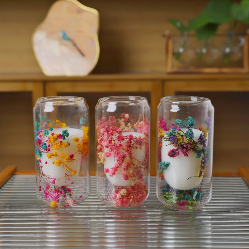 加厚大容量果汁饮料喝水杯双层隔热牛奶杯高硼硅玻璃干花可乐杯