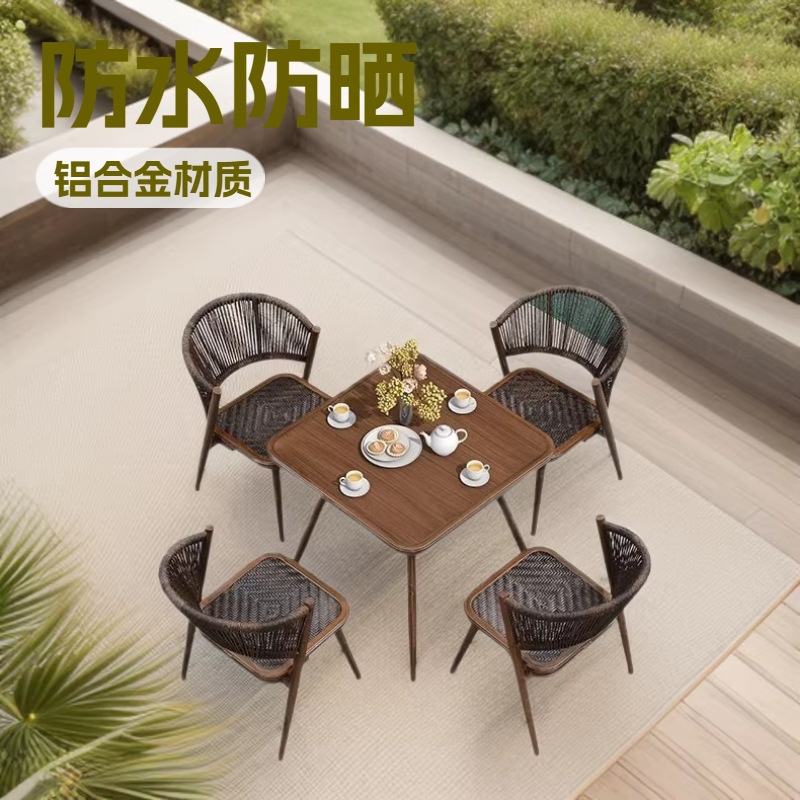 庭院室外花园餐桌椅组户外家具露天防水防晒阳台藤编金属休闲藤椅