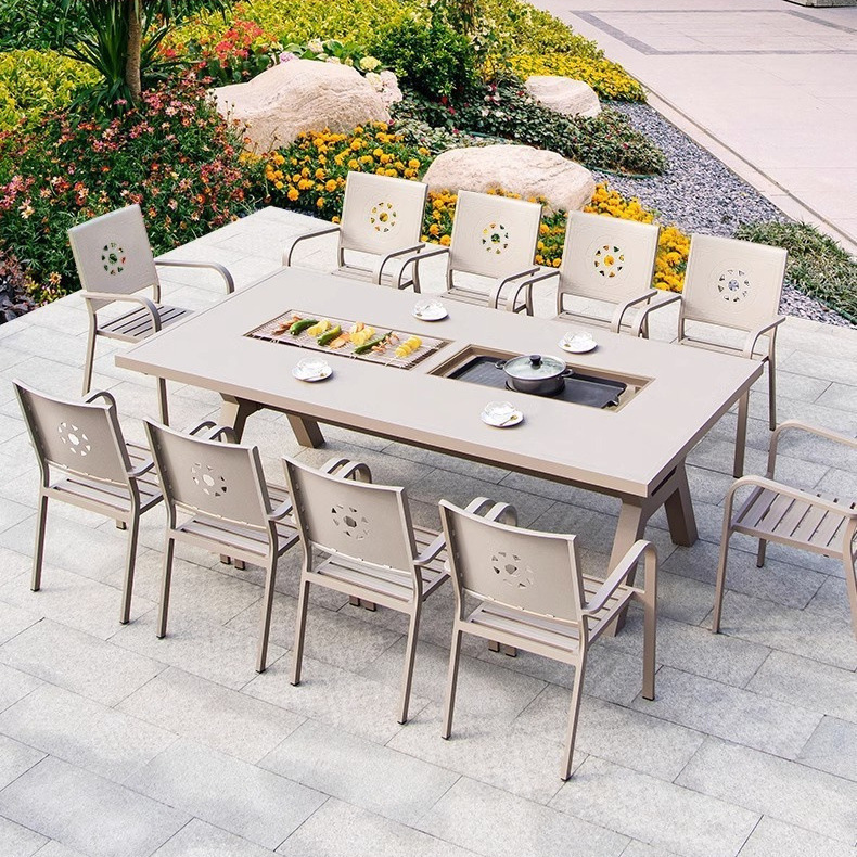 户外桌椅电碳两用铸铝家用烧烤桌BBQ室外庭院露天花园铁艺长餐桌