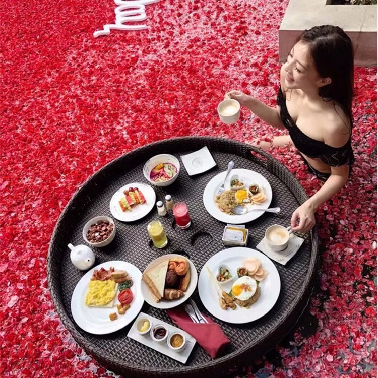 网红巴厘岛泳池漂浮盘圆形藤编心形篮子民宿酒店别墅游泳池餐盘