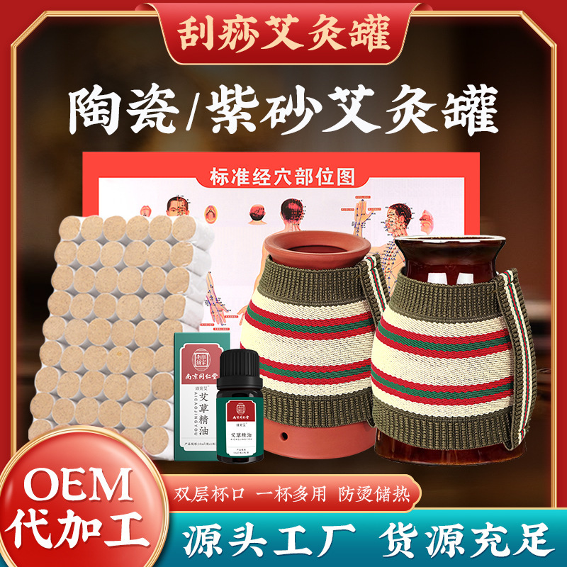 艾灸陶瓷罐刮痧按摩一体紫砂罐随身灸家用熏蒸仪多功能温灸罐批发